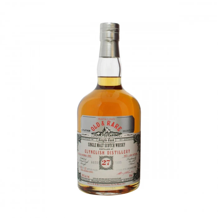 This single cask Clynelish is from the Platinum Old & Rare series of very limited single malts from Hunter Laing & Co. bottled exclusively for The Whisky Shop. Distilled in 1993 and bottled in 2021, this 27-year-old is left free from chill filtration and at a natural cask strength of 48.9% abv. Limited to 121 bottles.