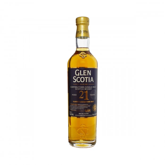 A smooth and aromatic single malt from the premier Campbeltown distillery, Glen Scotia, this expression was matured for 21 years in a combination of refill bourbon barrels and refill America oak hogsheads, before being married for a six month finish in first-fill Oloroso sherry casks. This marvellous release comes bottled in a premium bottle with royal hues of purple and gold. Bottled at 46% abv, free from chill-filtration and at natural colour.