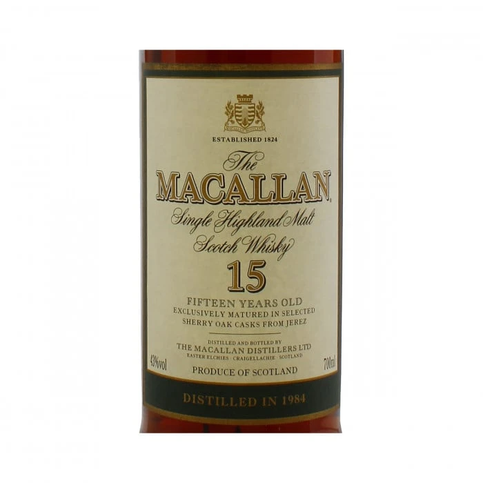 A stunning vintage bottle of The Macallan. This dram from 1984 was matured for 15 years before being bottled at 43% abv. A rare piece of whisky history!
