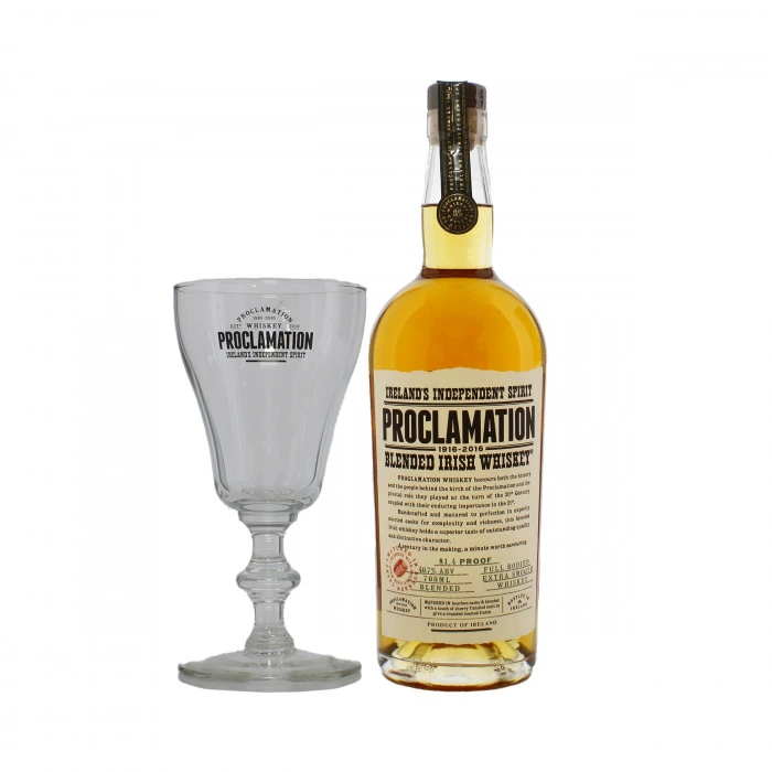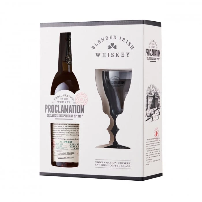 A stunning gift set from Proclamation. This pack contains a bottle of Proclamation Blended Irish Whiskey as well as a Proclamation branded Irish coffee glass. The expression is triple distilled and matured in bourbon casks to develop the dram’s wonderful smoothness.