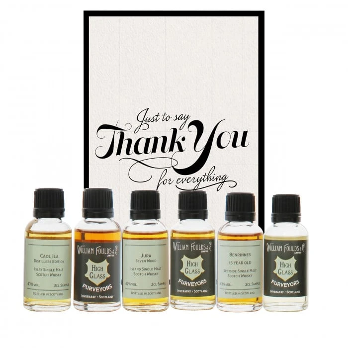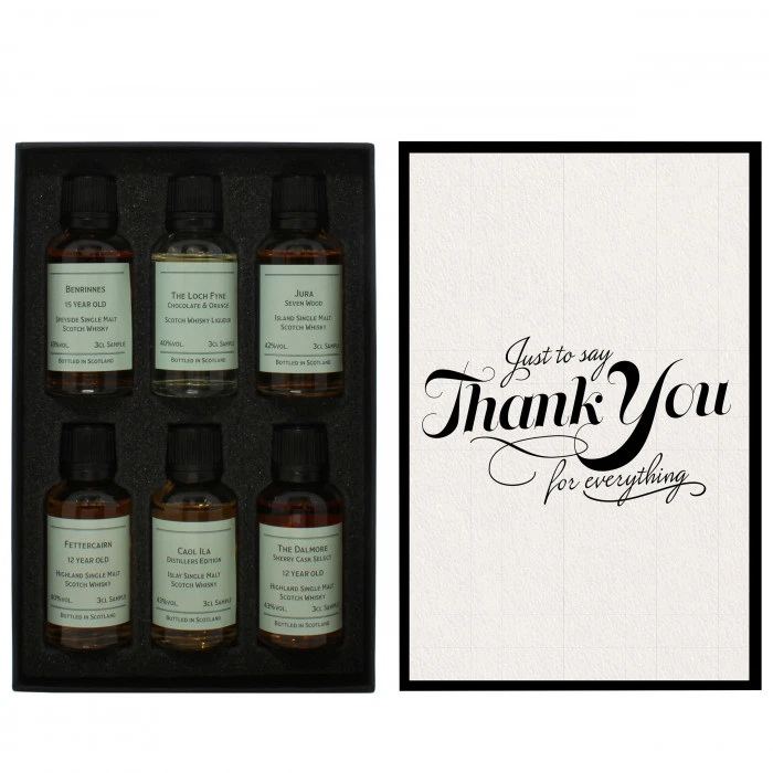 Show your gratitude in the best of ways, with this stylish gift pack of tasting whiskies. Presented in 3cl bottles, it features six of the very best expressions from every corner of Scotland: