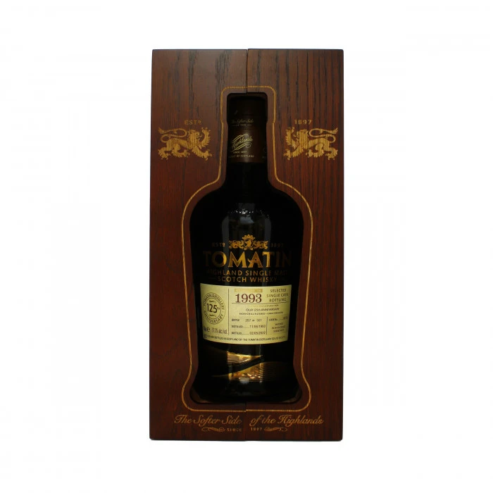 A very special Tomatin expression, released in 2022 to celebrate their 125th anniversary, this whisky is a must for lovers of the historic Highland distillery. Matured for just under thirty years, the liquid was laid down in 1993 in a cask similar to that which would have been used back in 1897, an Oloroso sherry cask. Presented at an impressive 57.3% abv.